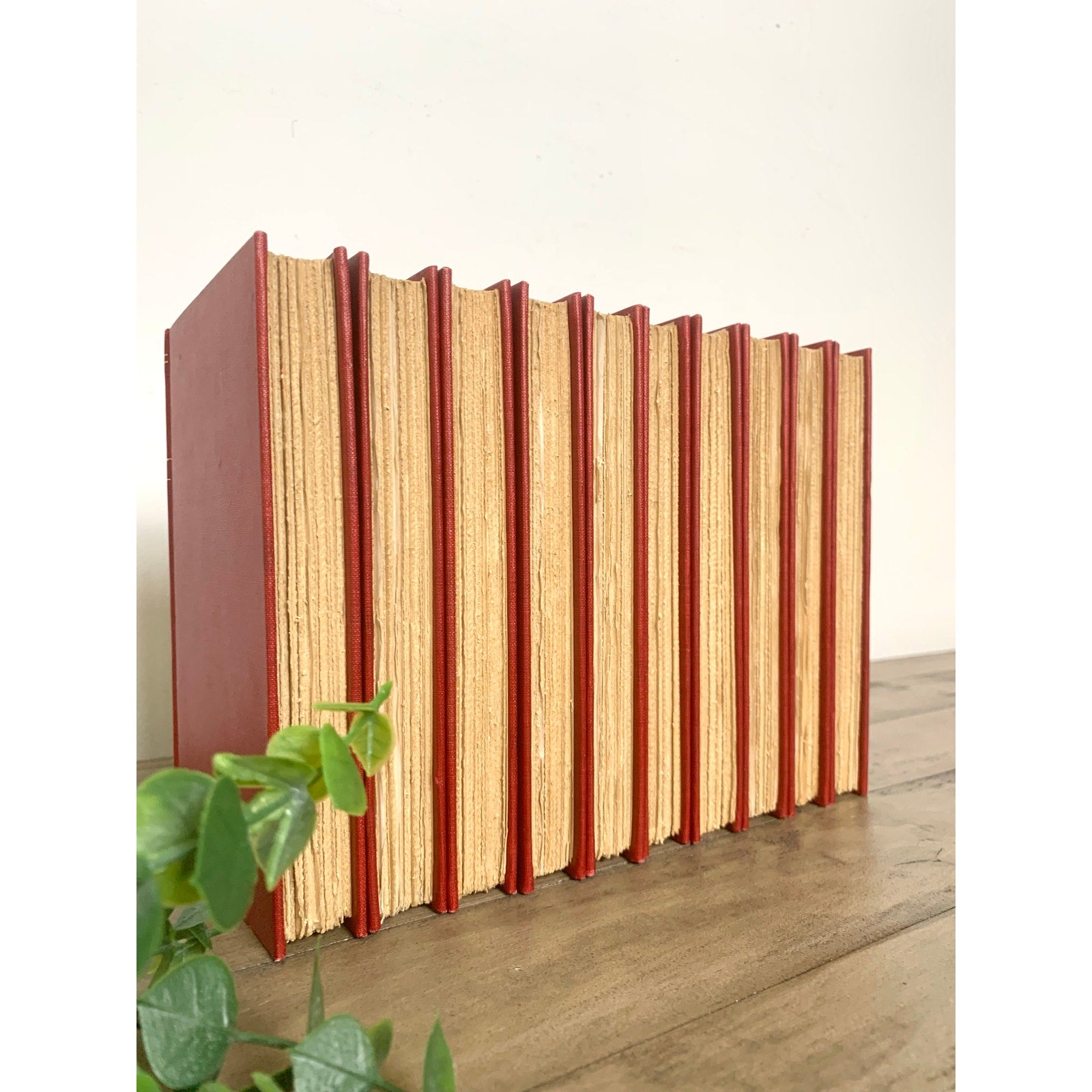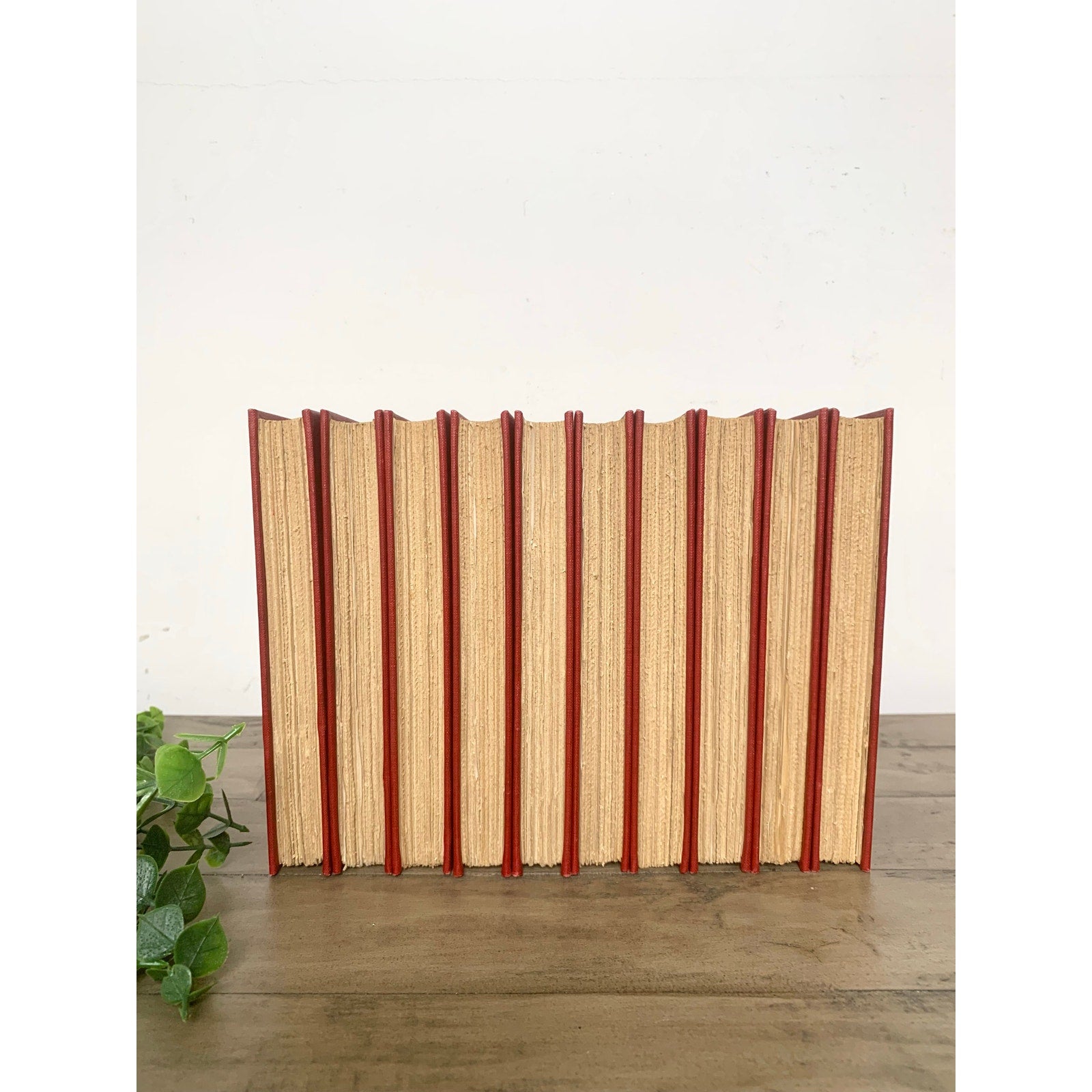 Good antique condition consistent with age. The red cloth covers show some fading and spotting. Pages have age-related toning, and some volumes have foxing. Spines and bindings are intact and sturdy. Please see photos for details of condition.