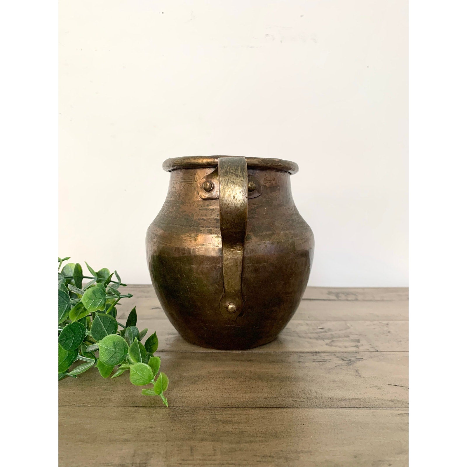 Antique Hand Hammered Copper Pitcher Rustic Farmhouse Patina Primitive Vase Jug