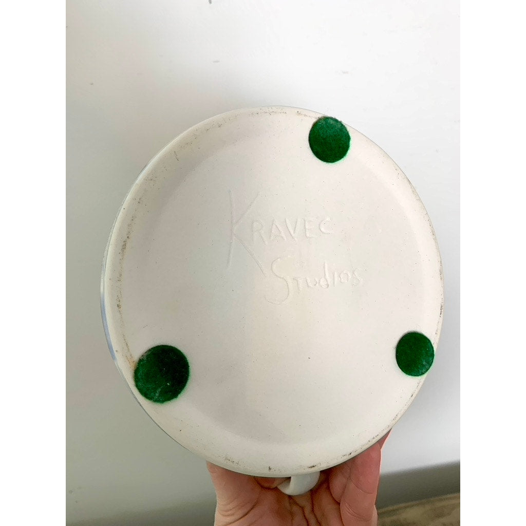 Kravec Studios Art Pottery Vase Oil Lamp Candleholder Signed Ceramic Jug Cottage