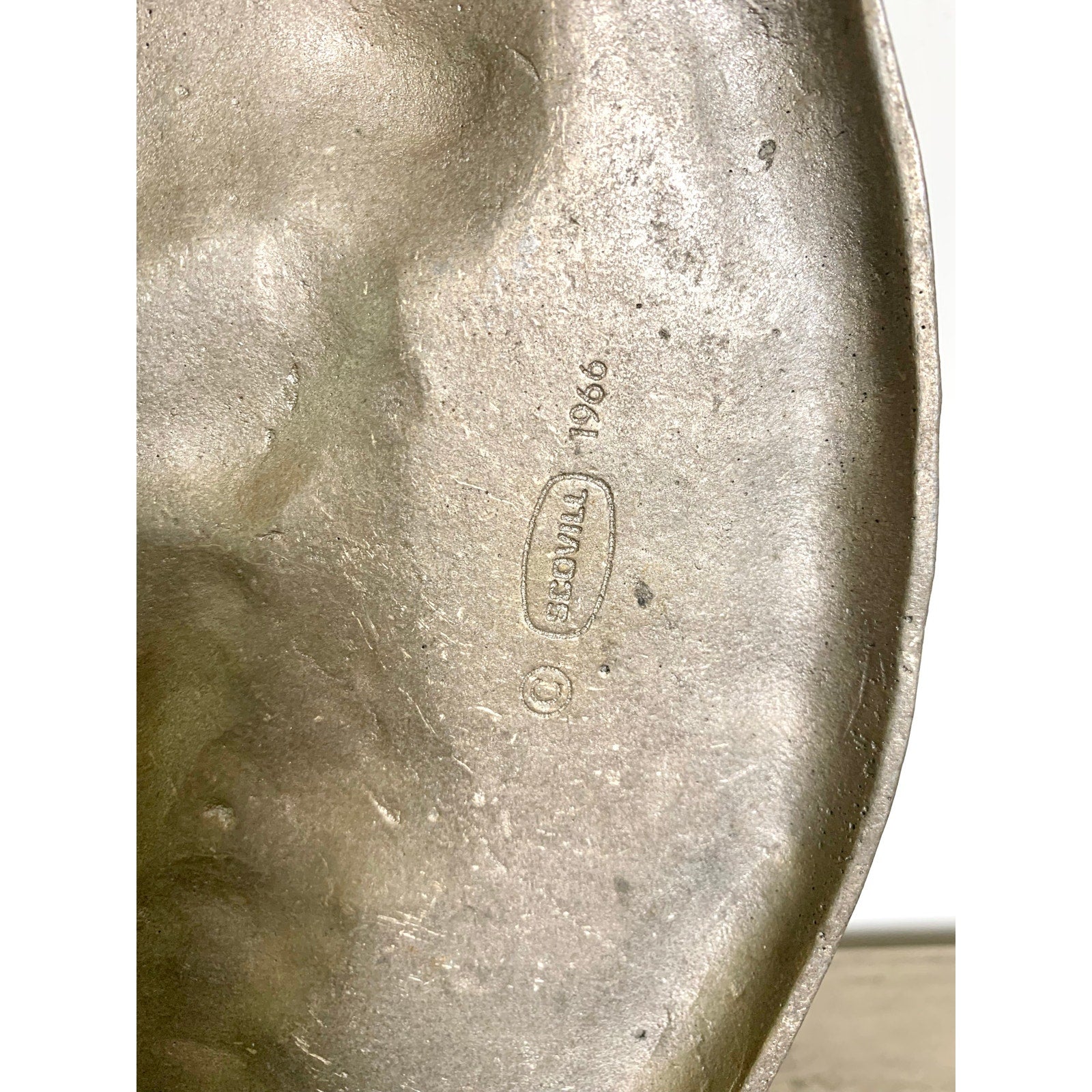 Make a bold statement with this 1966 Scovill metal wall hanging. Crafted with striking Greco-inspired profiles, it features detailed floral accents and a beautiful aged patina. Cast in relief with a round border and ready to hang, it’s a sculptural piece of vintage wall art with personality.