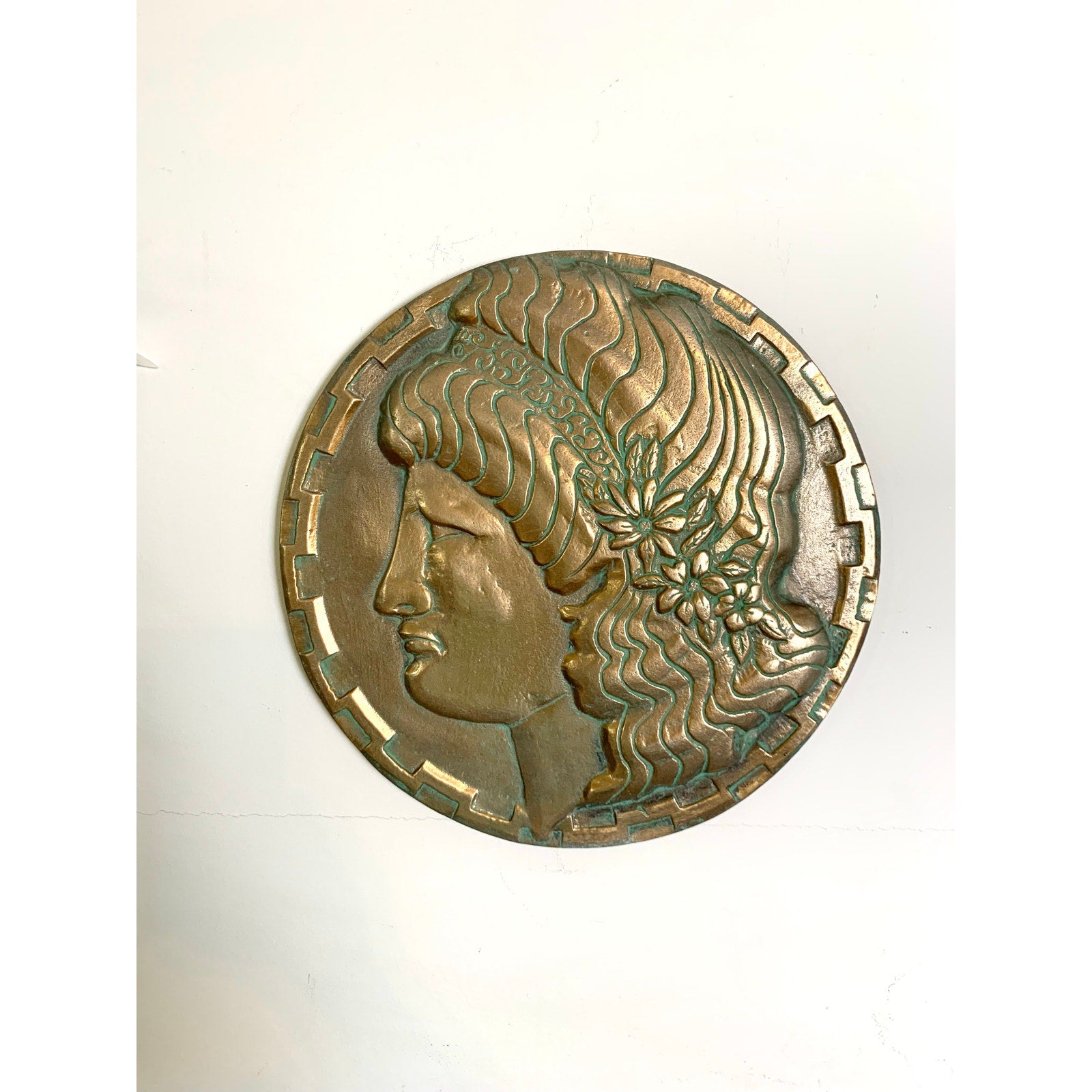 Vintage 1966 Scovill Metal Medallion Wall Hanging - Greek Old Money Old World