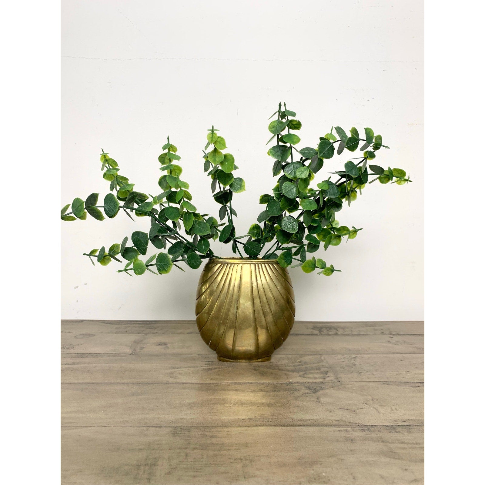 Elegant vintage brass shell-shaped vase by Dolbi Cashier, dated 1980 and made in Korea. This Art Deco–inspired piece features a sculptural shell form with ridged detailing and a warm golden brass finish. Will be a Stunning vase, planter, or stand alone decor piece.