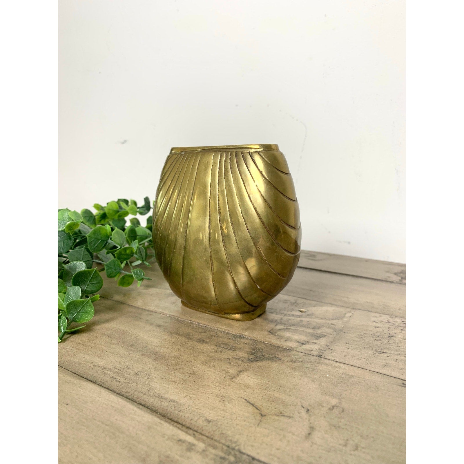 Vintage 1980 Dolbi Cashier Brass Shell Vase Art Deco Coastal Nautical Old Money