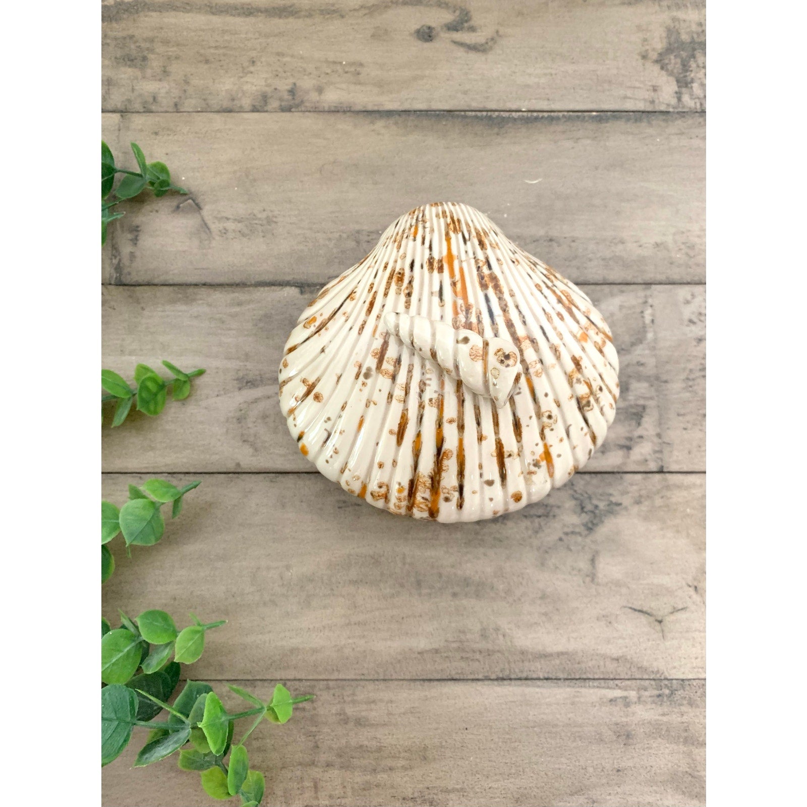Vintage 1982 Scioto Ceramics Shell Lidded Trinket Dish Box Coastal Beach Cottage