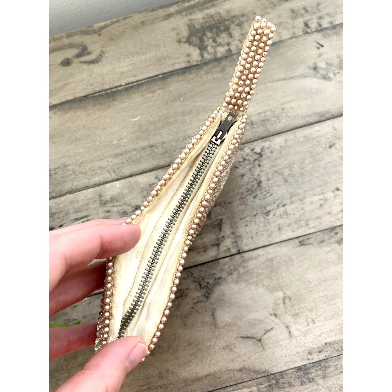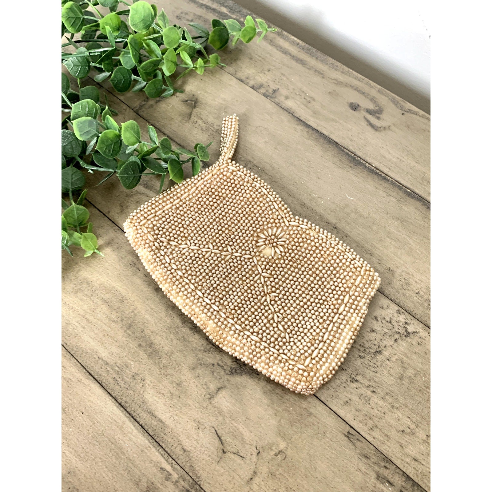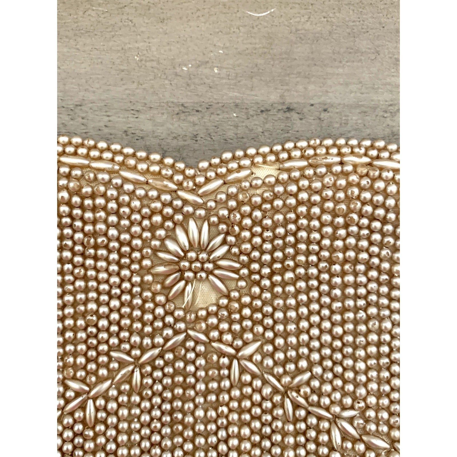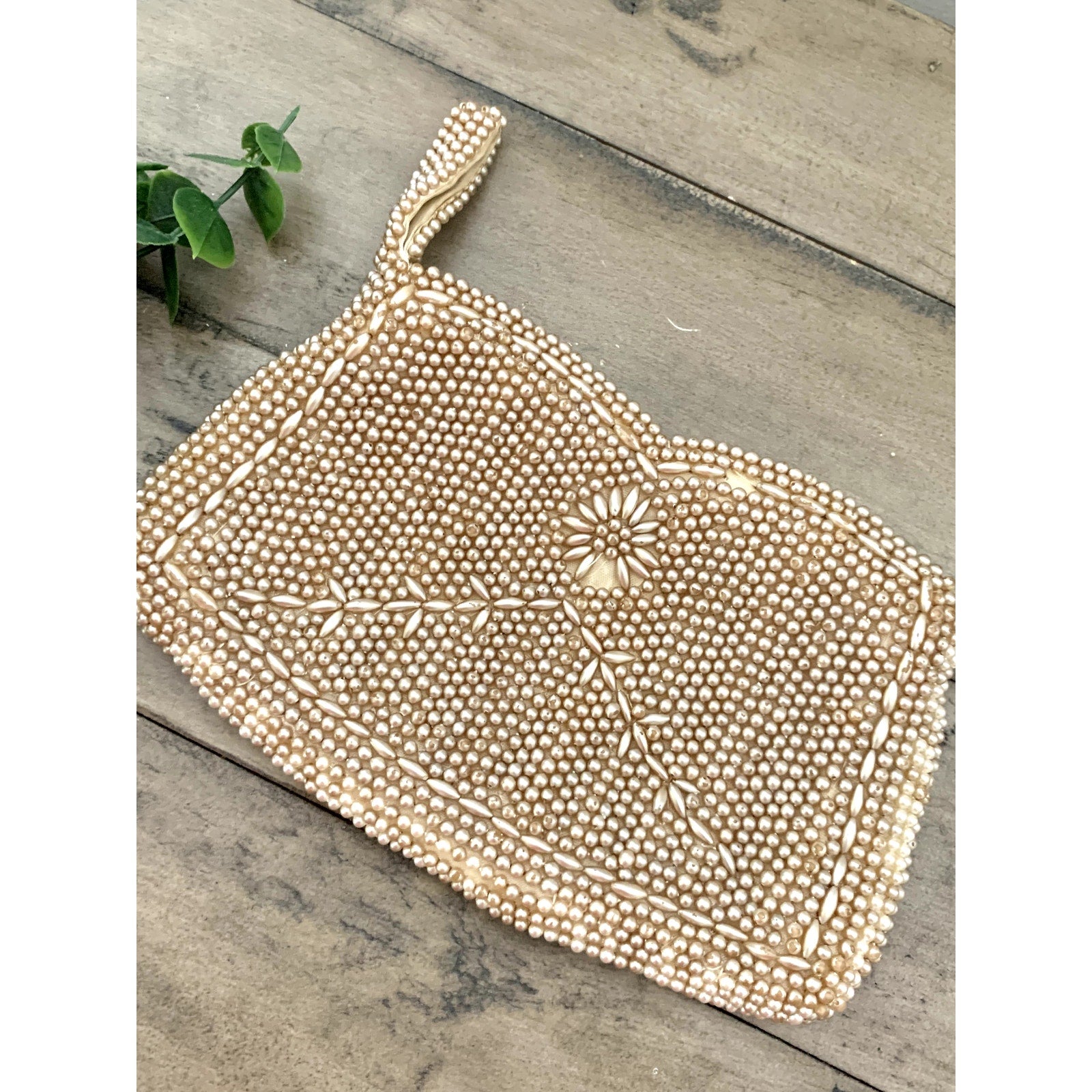 Vintage Beaded Faux Pearl Evening Bag Wristlet Clutch Purse Romantic Glam Boho