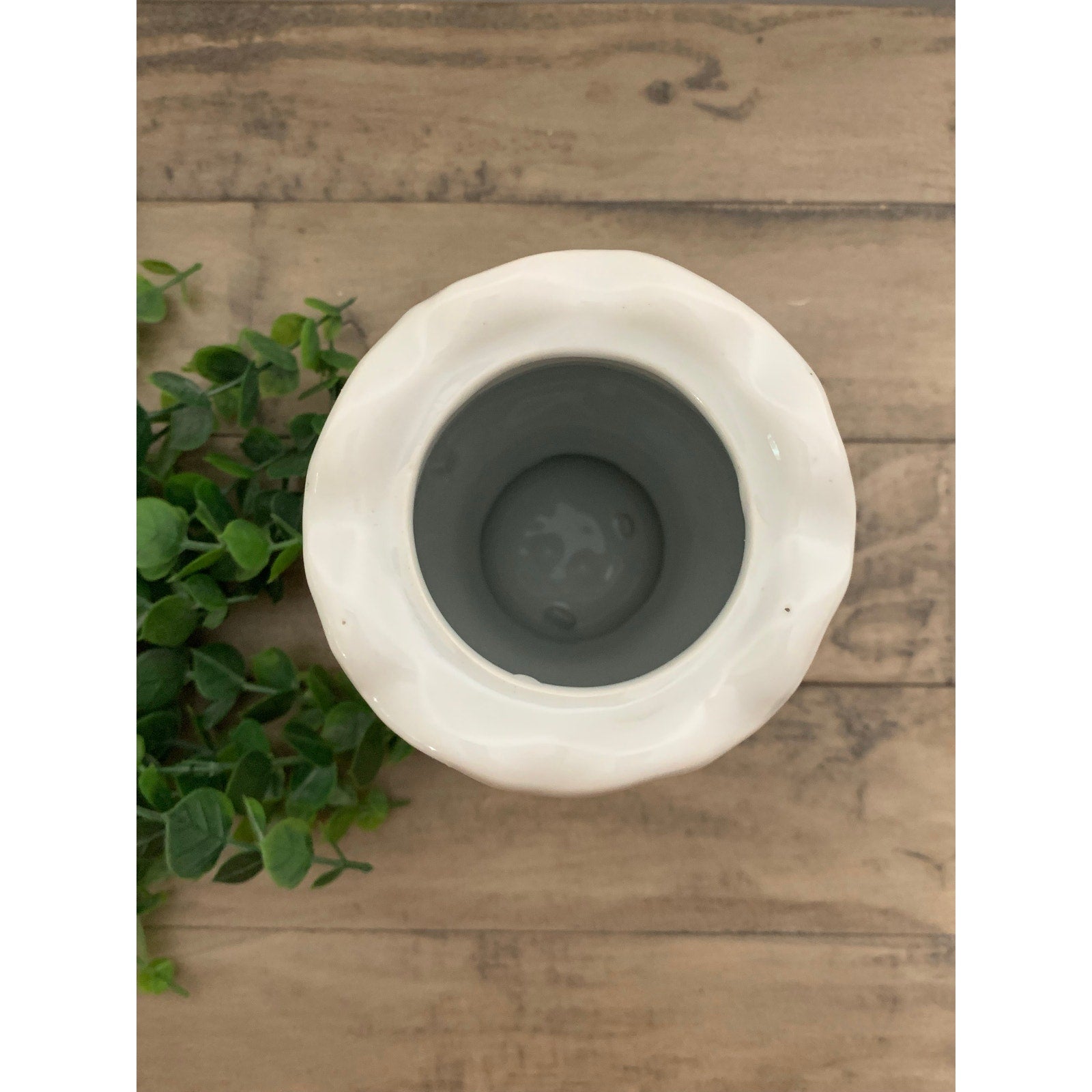 This vintage blue and white porcelain ginger jar features a traditional floral motif with rich cobalt designs. It comes with a matching fitted lid and scalloped top edge, adding extra charm to the piece. A timeless decorative accent, this jar can be styled on its own, displayed in a collection, or used as functional storage or vase. Marked Made in China on the base.