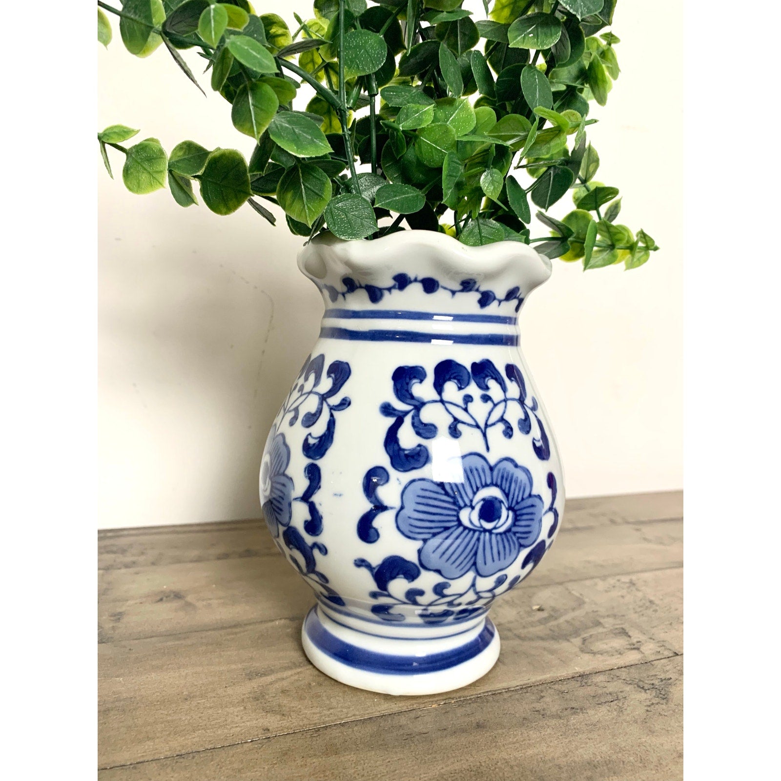 Vintage Blue and White Porcelain Ginger Jar with Lid Chinoiserie Ceramic Cottage