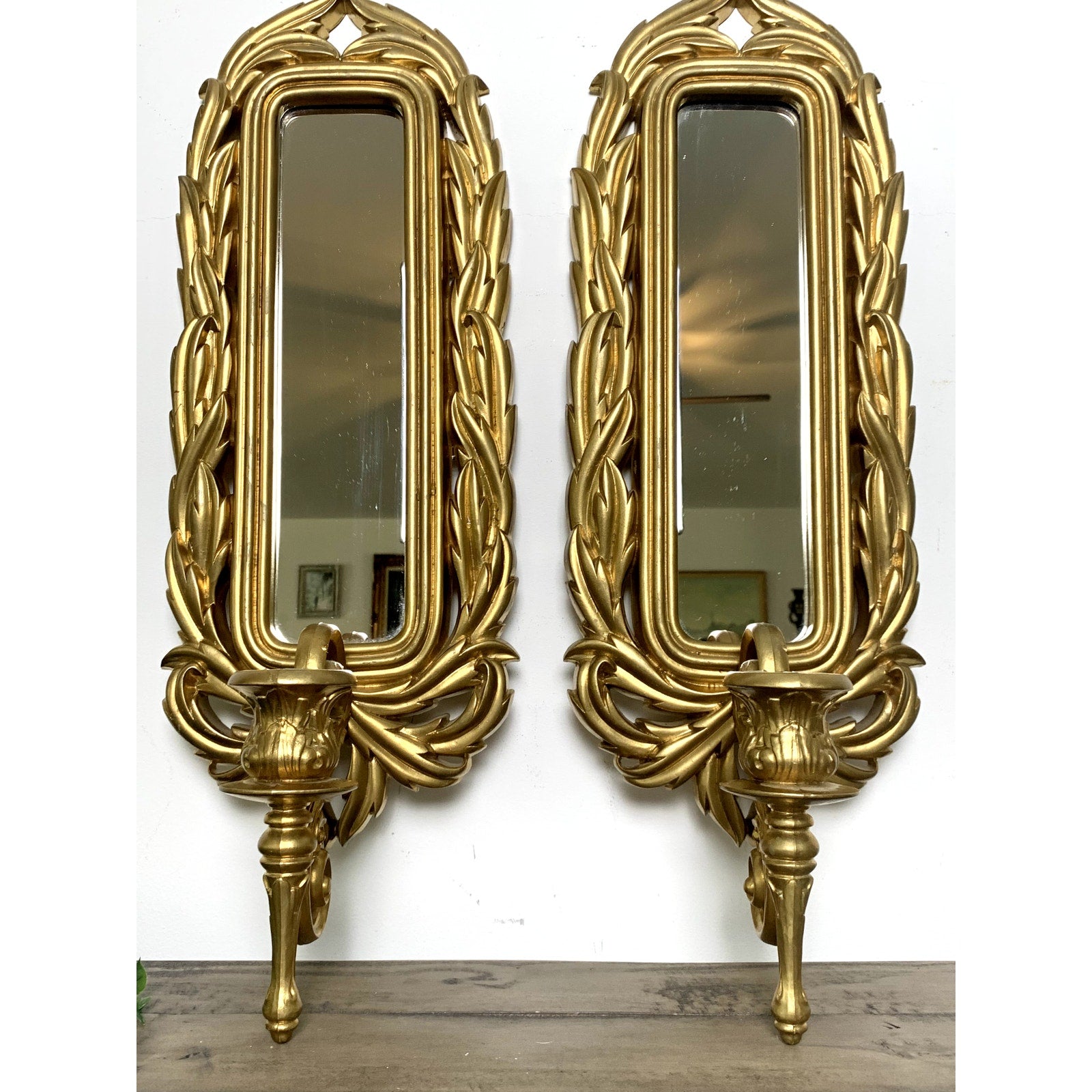 Vintage Burwood Gold Wall Mirror Sconces Ornate Hollywood Regency 1980 Glam Boho