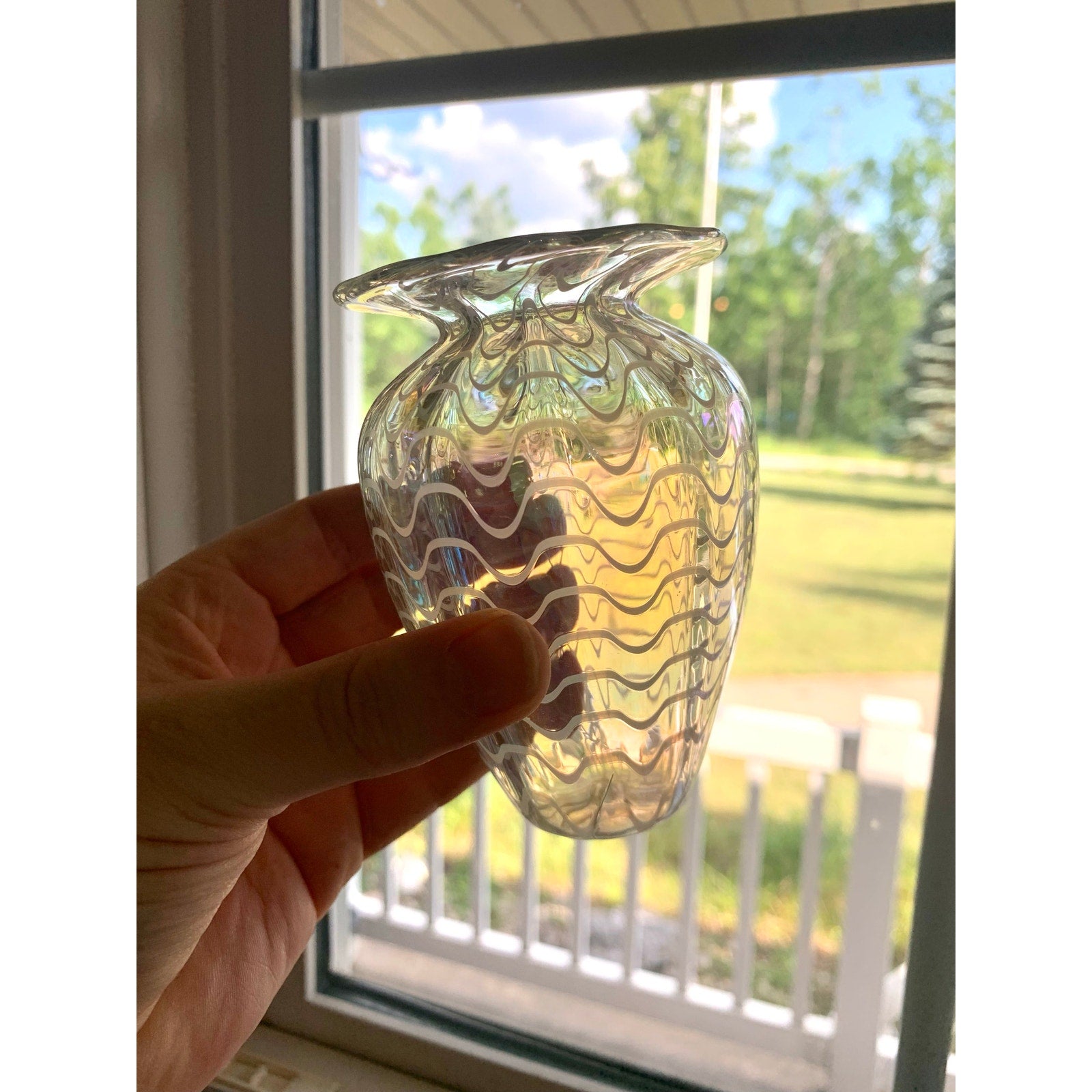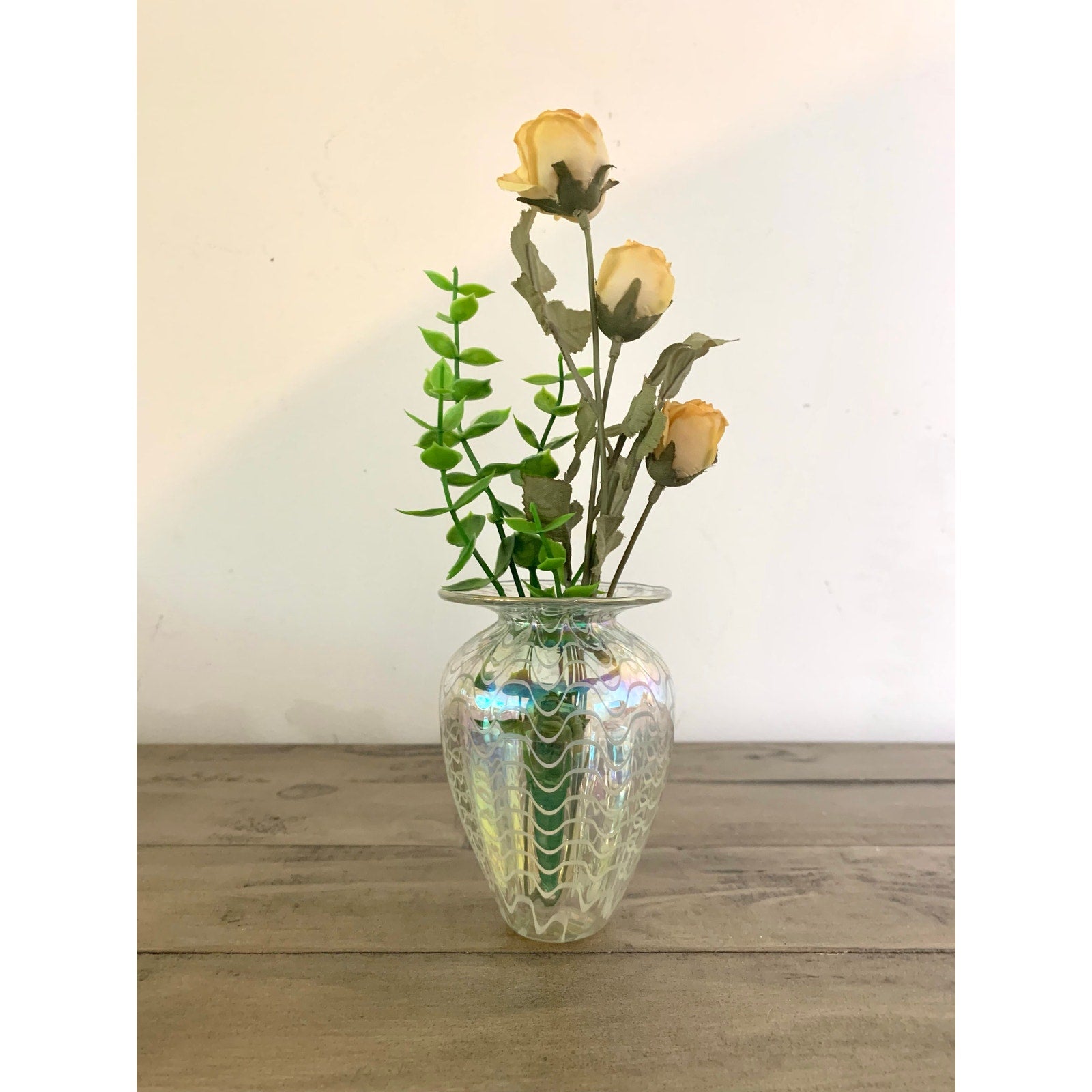 Vintage Glass Eye Studio Iridescent Art Glass Vase Handblown with Wavy Design