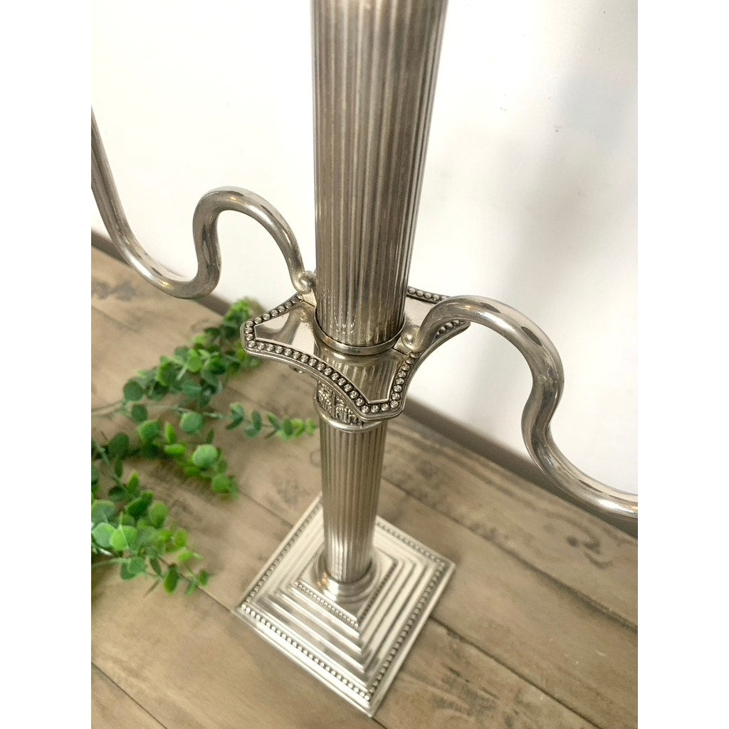 Vintage Godinger Silverplate Three-Arm Candelabra Neoclassical Fluted Column Elegant 19"