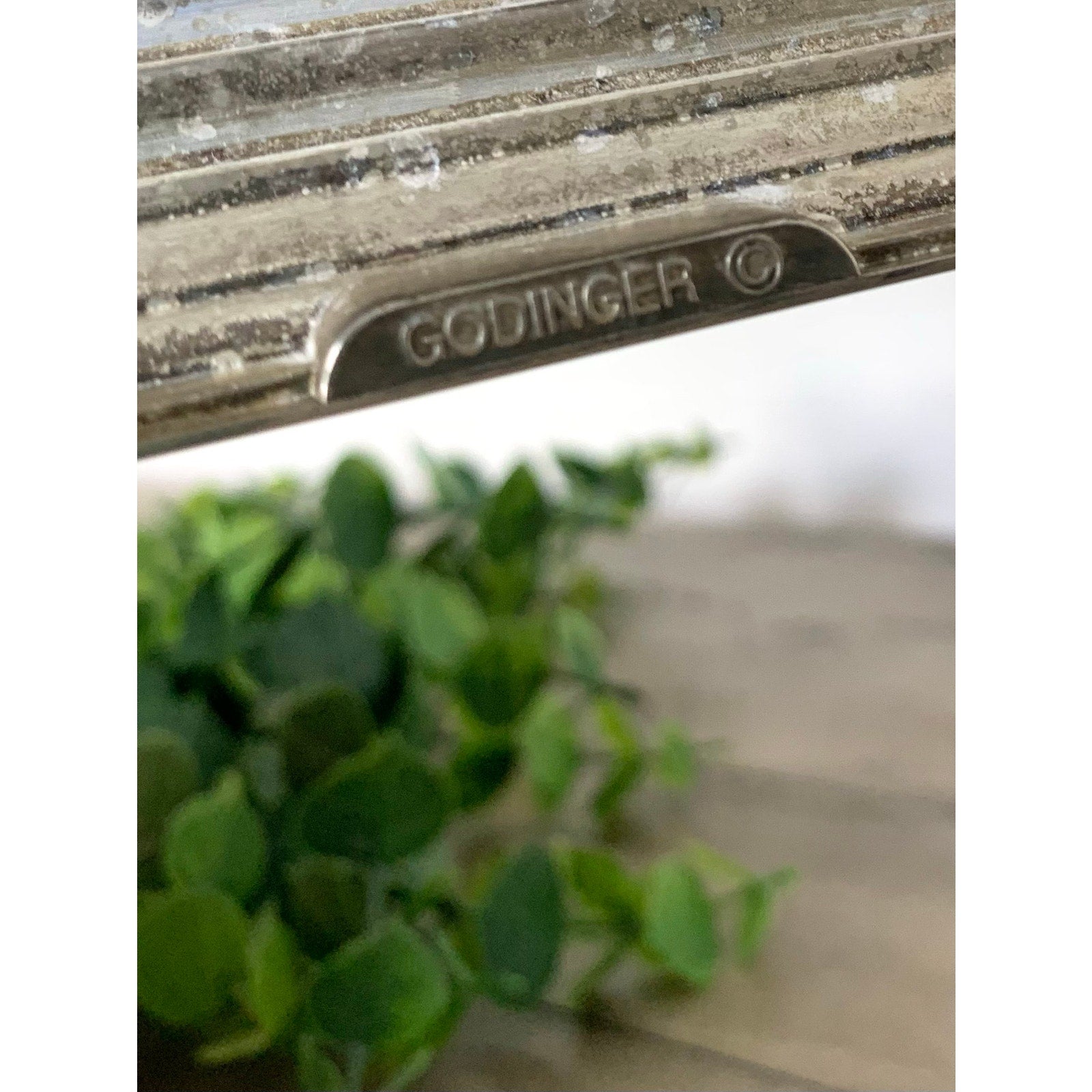 This vintage Godinger silverplate three-arm candelabra features a classic neoclassical design with a fluted column stem, stepped square base, and gracefully curved arms. The balanced proportions and refined detailing give this piece a timeless, formal look that works beautifully in various interiors.