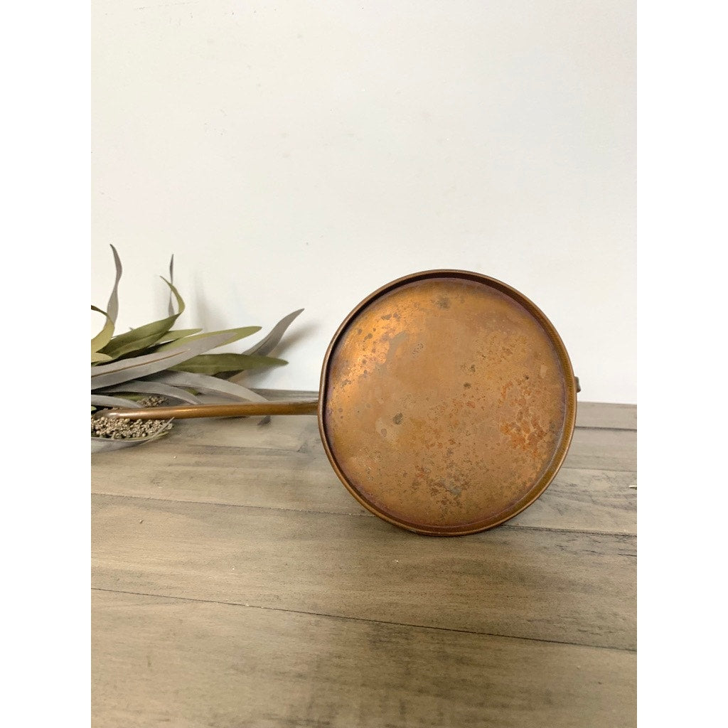 This vintage hammered copper watering can features an elegant long spout and delicately curved handle with a scalloped rim. The hand-hammered texture gives it beautiful character and a warm patina that enhances its charm. Made of pure copper, it’s both decorative and functional — ideal for watering plants or displaying as rustic cottagecore or farmhouse decor. A timeless accent for a shelf, potting bench, or kitchen windowsill.