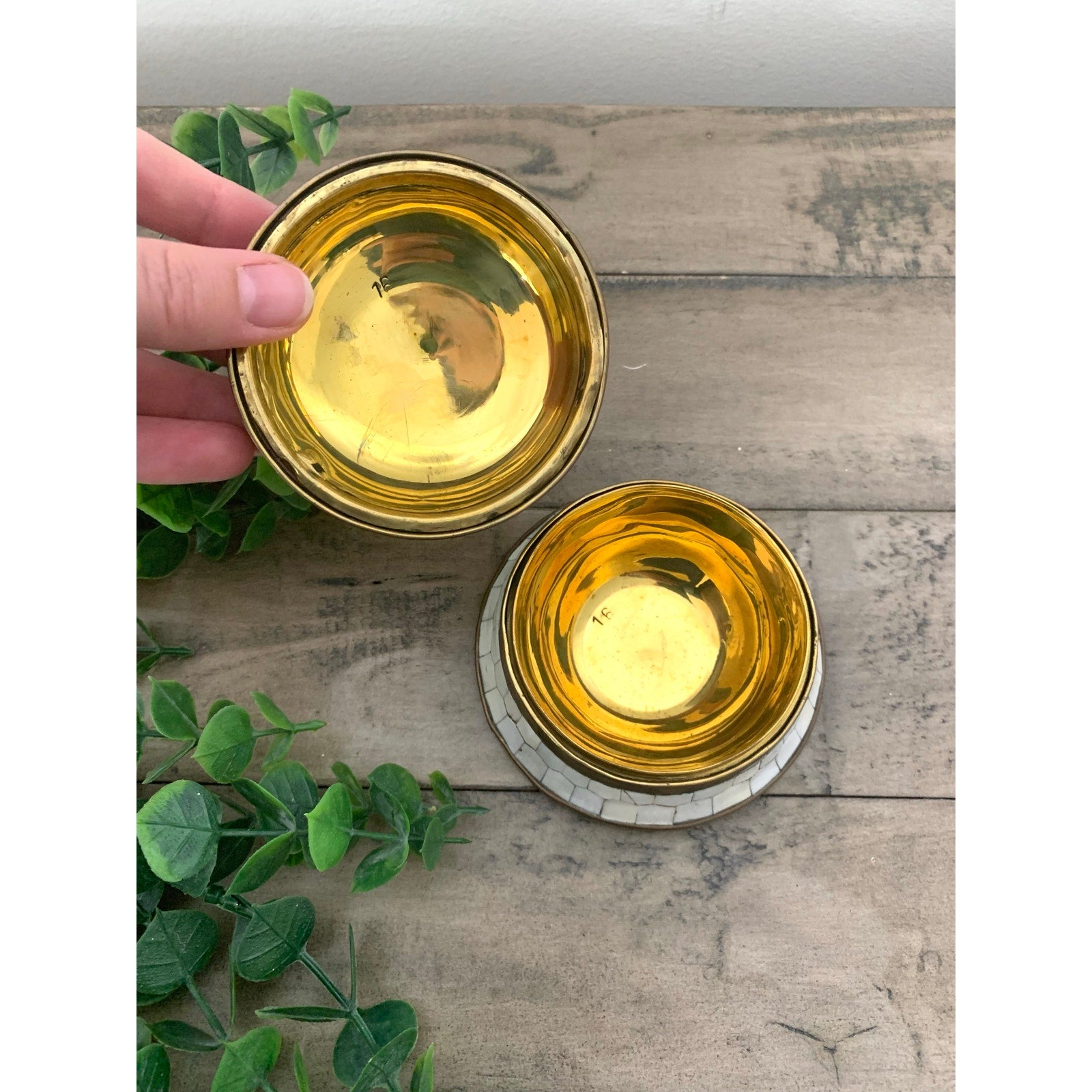 Vintage Inlaid Bone & Brass Domed Lidded Trinket Box Jewelry Storage Old Money