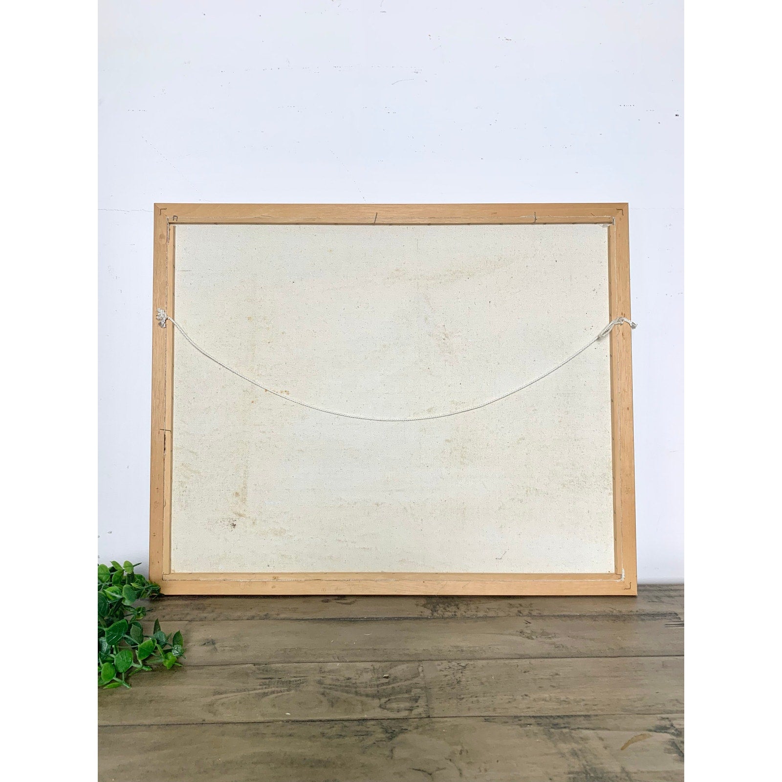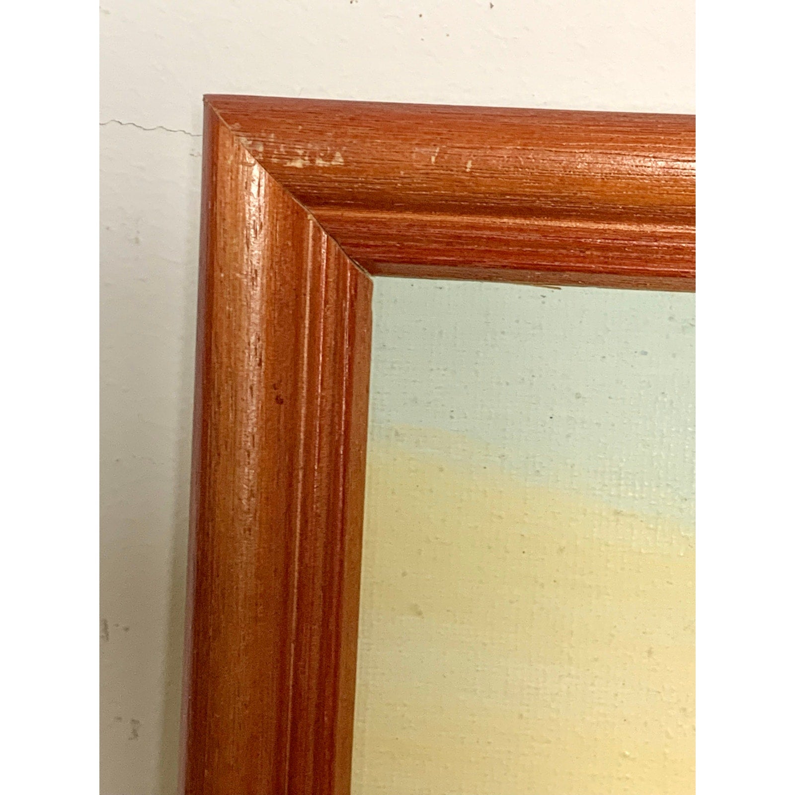 The painting is signed by the artist in the lower right and presented in its original wood frame with a warm, reddish-brown finish. Ready to hang. The frame shows light surface wear consistent with age and some scuff on an area of the paint (see photos), but overall the piece displays beautifully and adds instant character to any space.