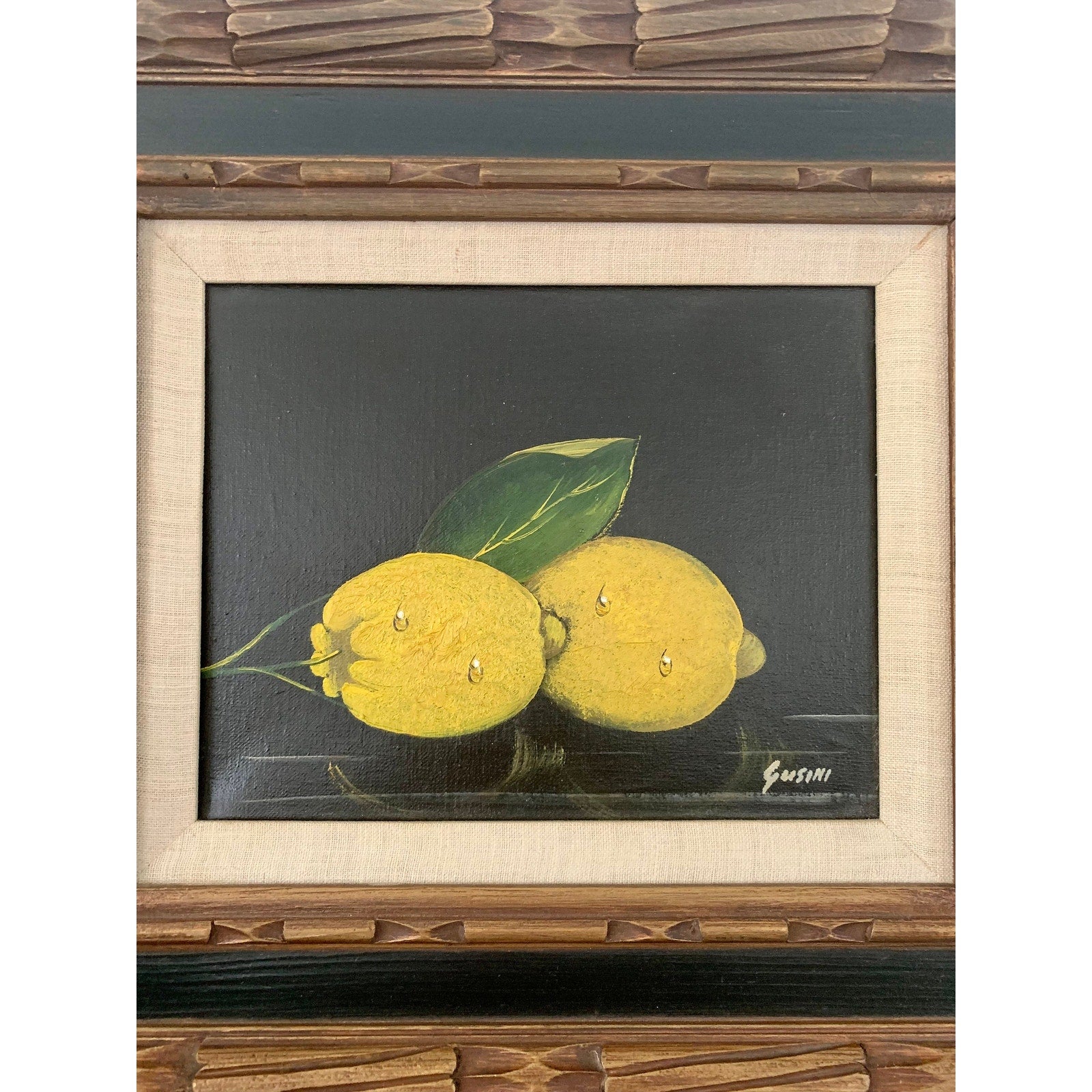 Vintage Original Oil Painting by Antonio Gusini Still Life Lemons Framed Canvas