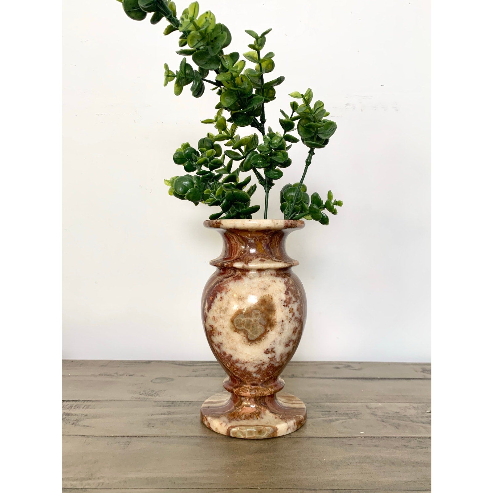 Vintage Polished Onyx Stone Vase Natural Striped Marble Pattern Earthy Boho Urn
