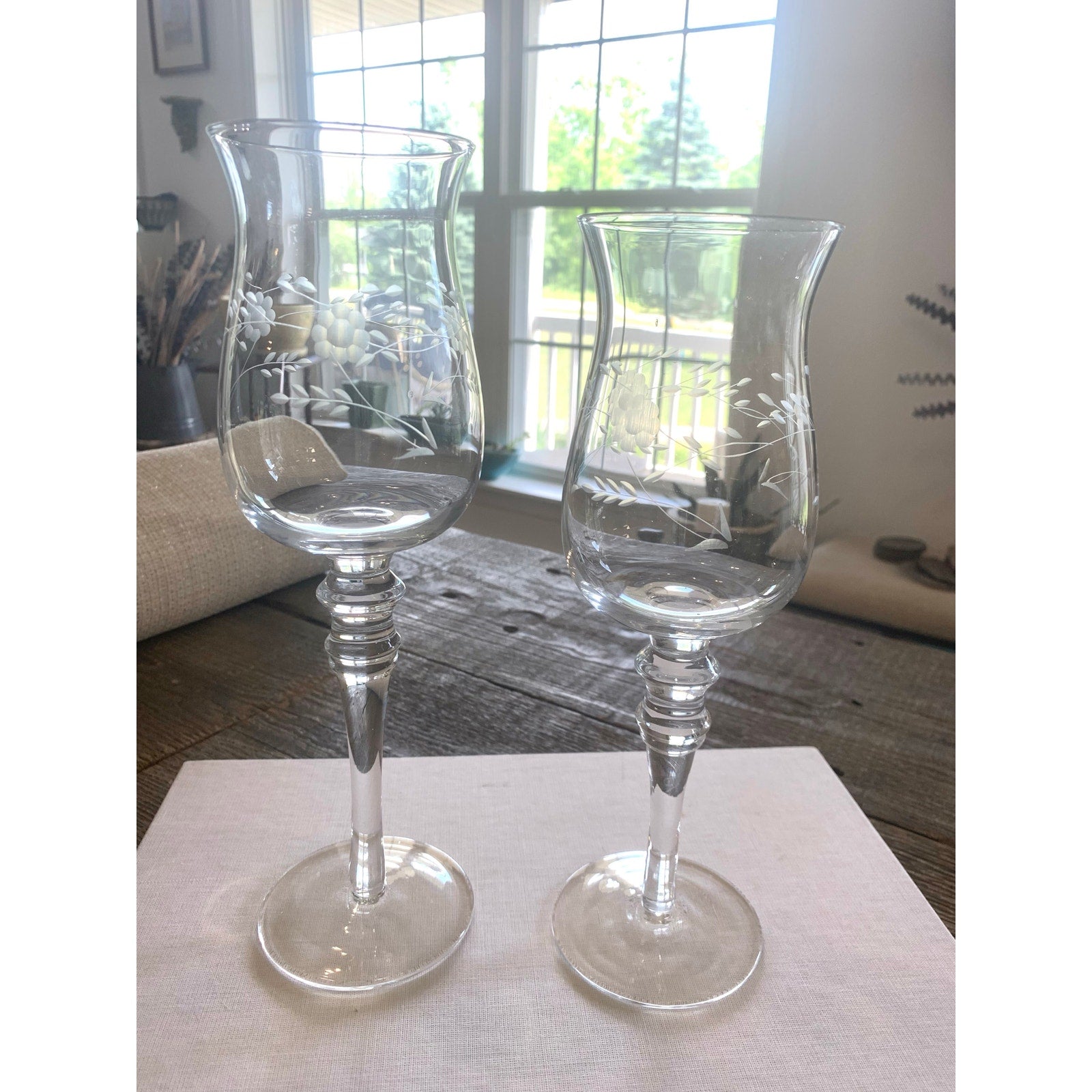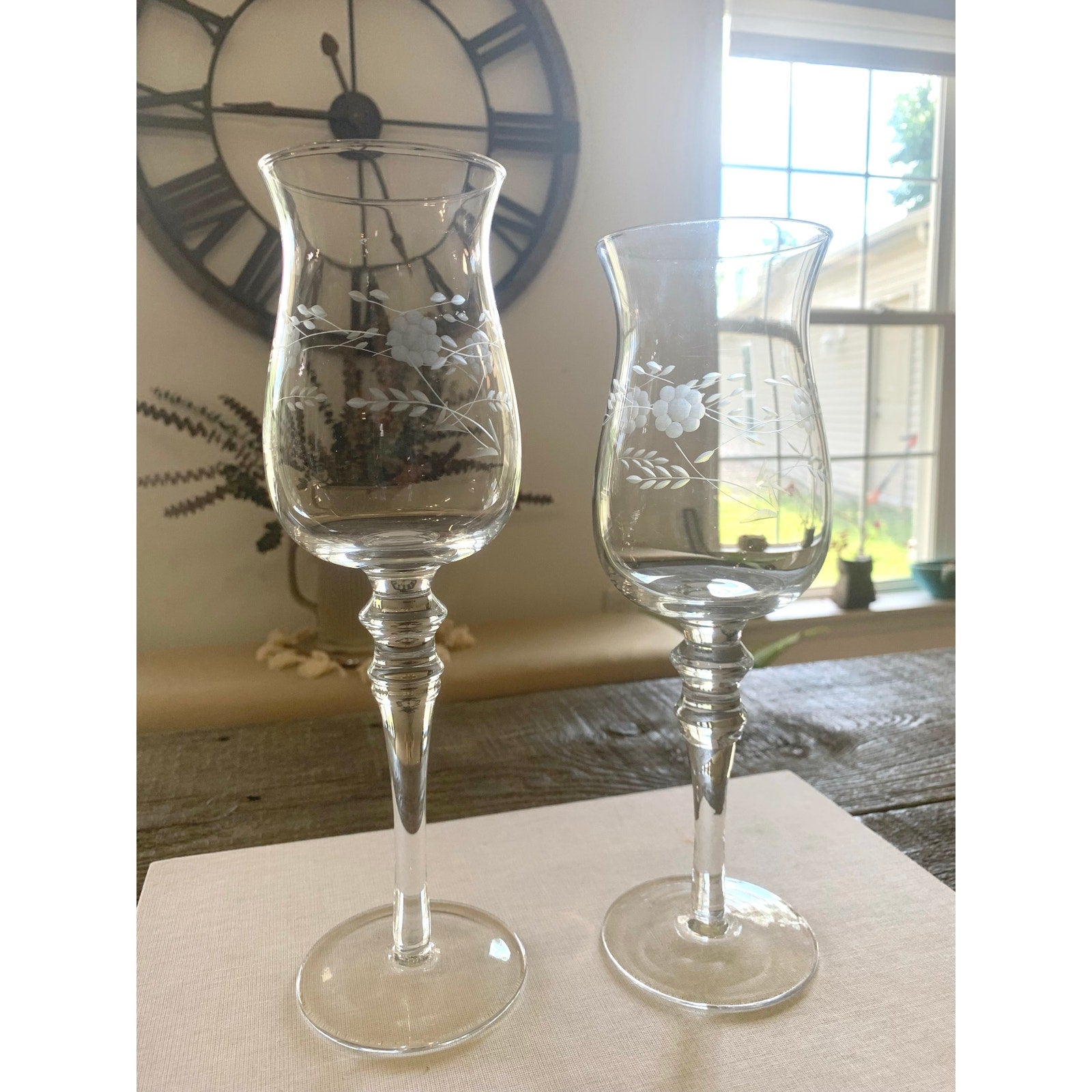 Vintage Princess House Etched Glass Hurricane Candle Holders – Floral Design, Set of 2