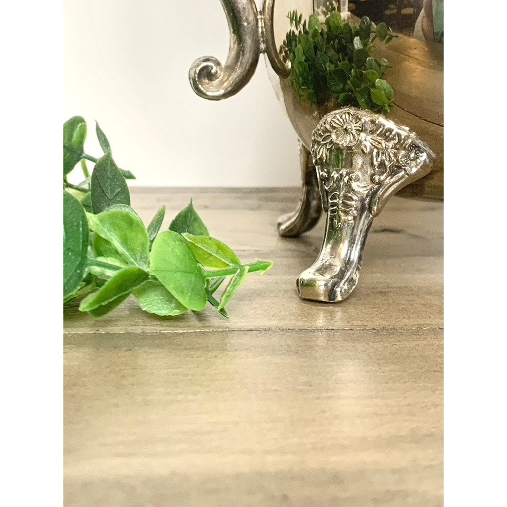 Vintage Silverplate Coffee Pot Tea Pot Ornate Footed Serving Dish Hinged Lid Floral Elegant