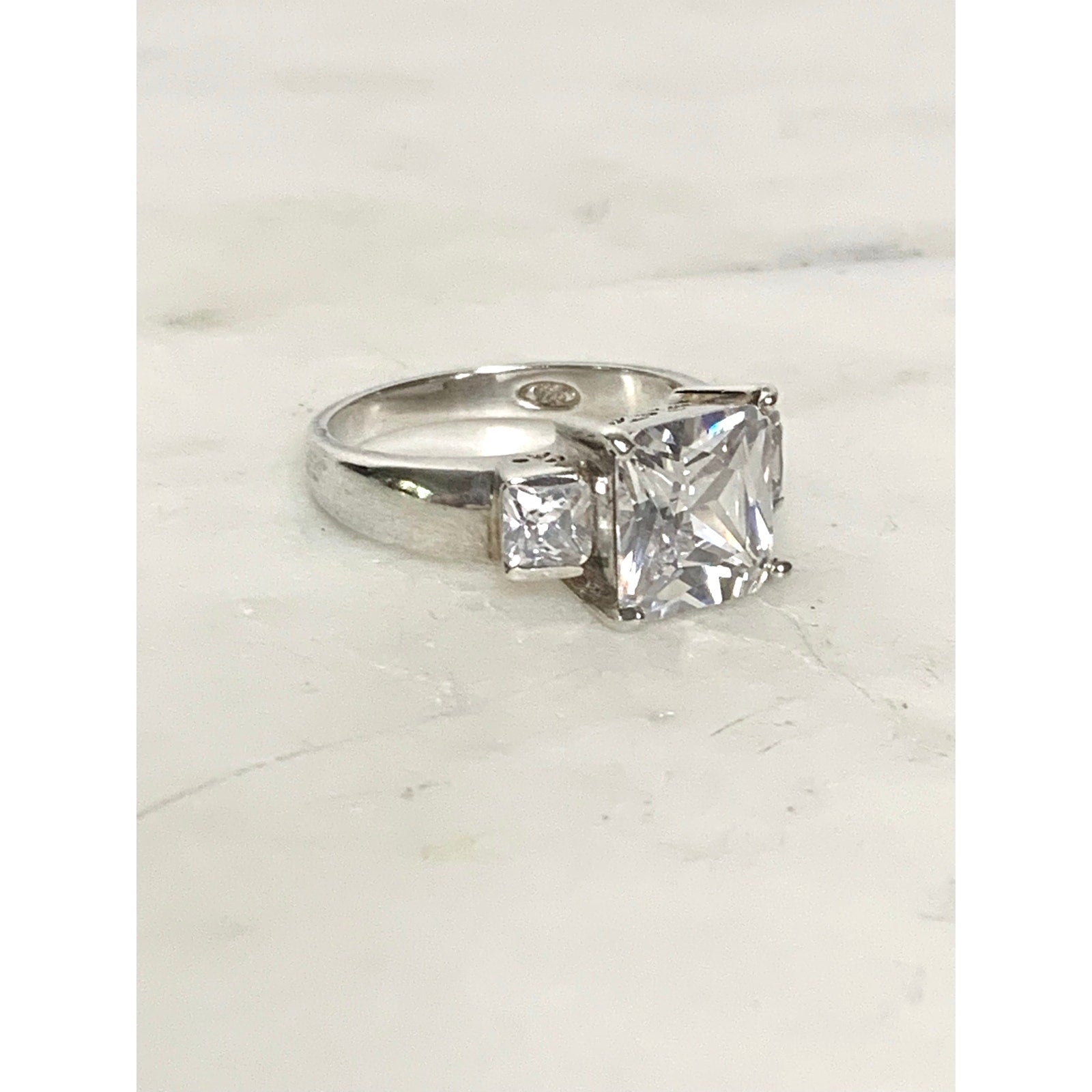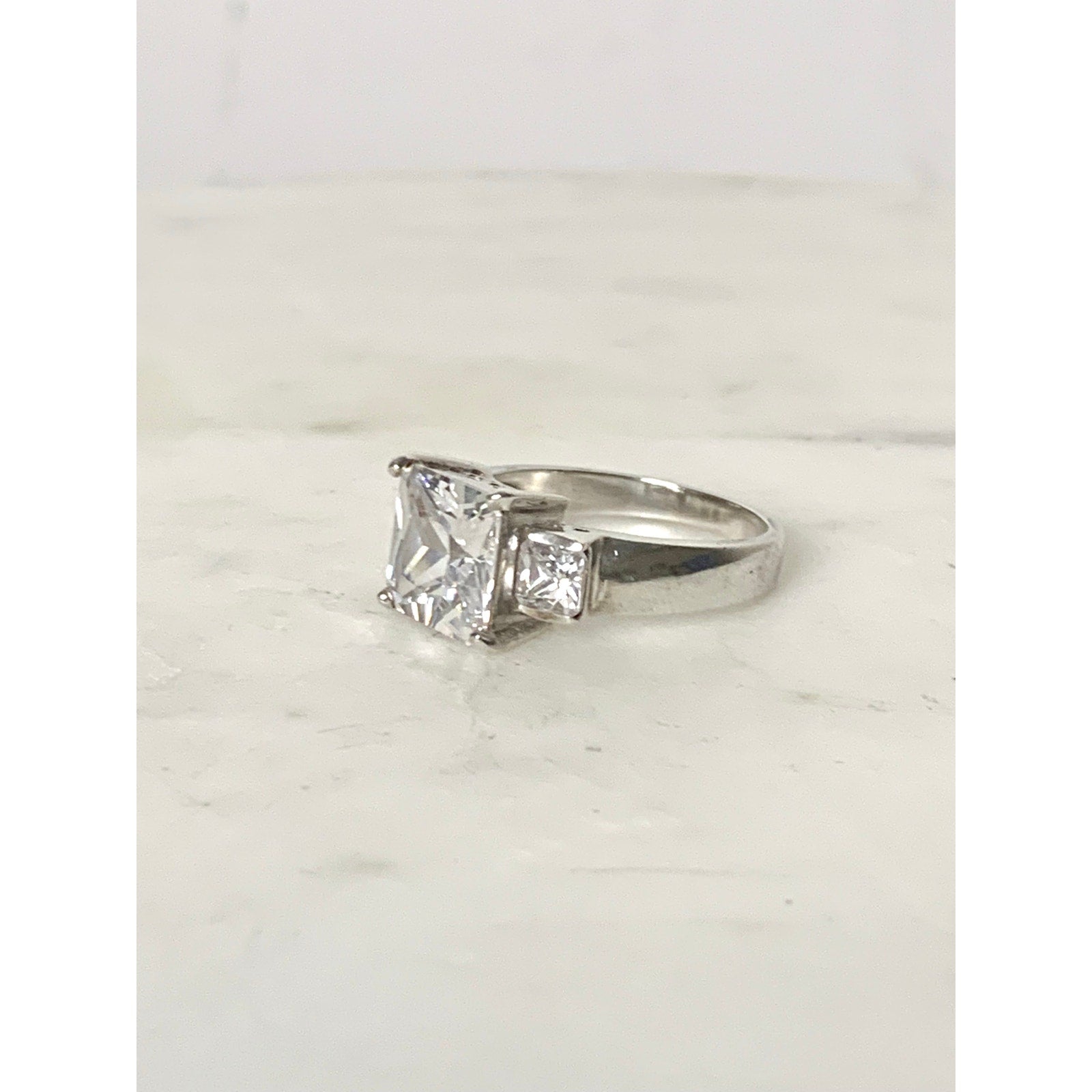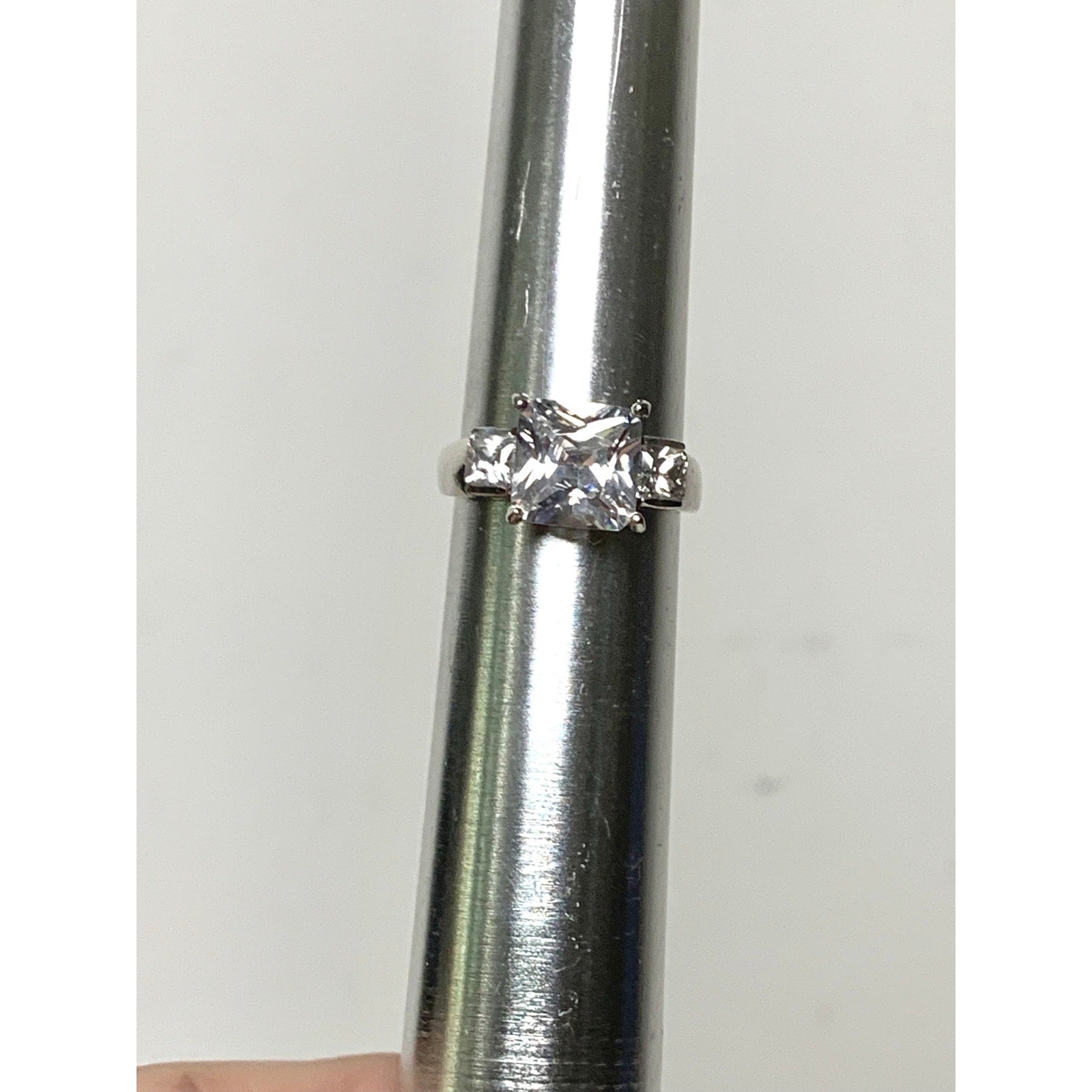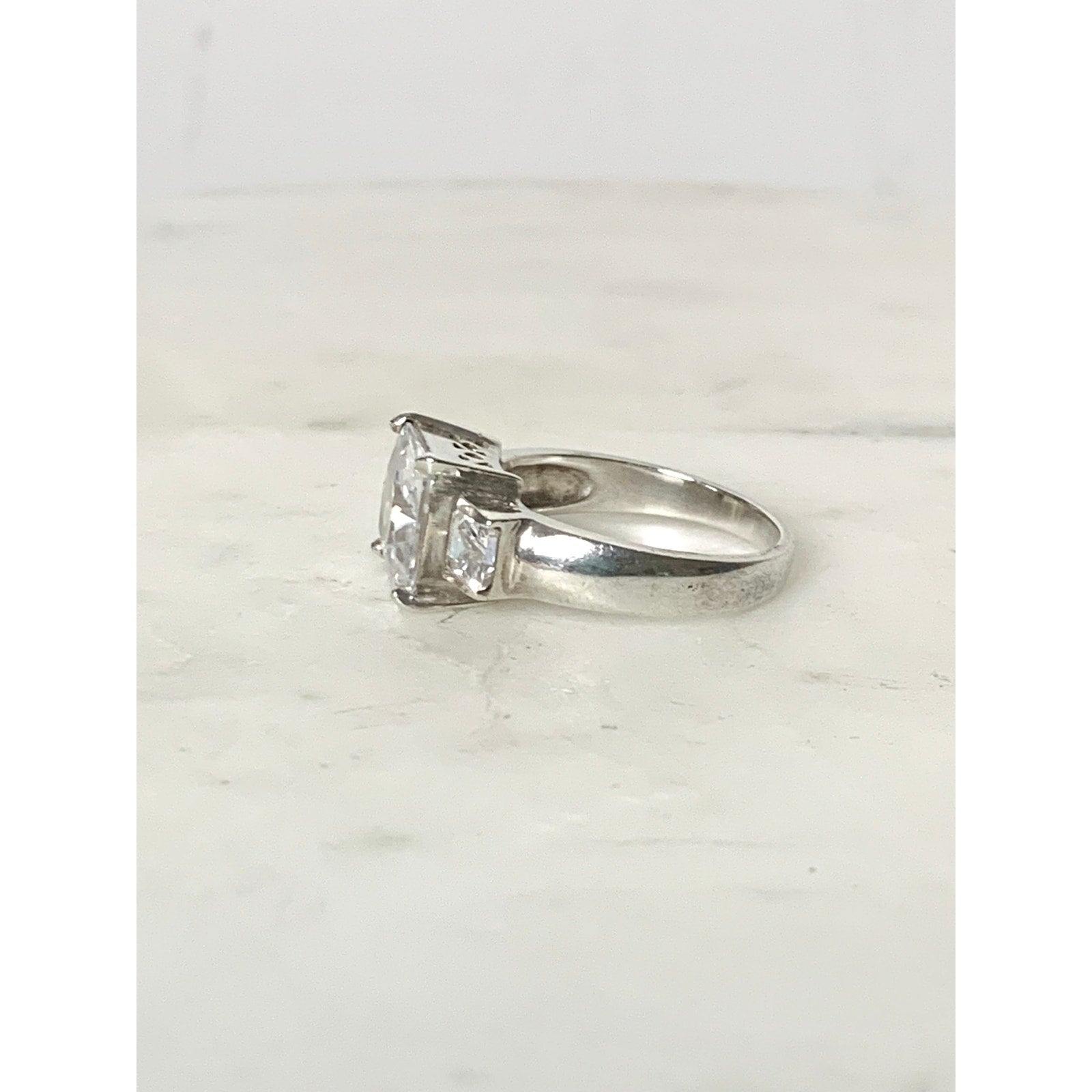 Vintage Sterling Silver Ring with Cubic Zirconia Size 7.25 Princess Cut - 925