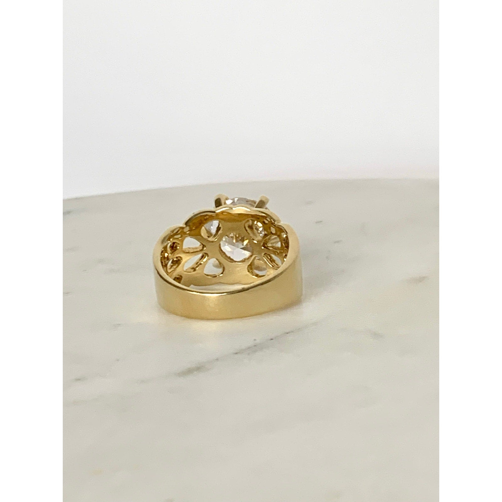 Vintage Uncas Sterling Silver Gold Vermeil Statement Ring CZ Size 8.25 Cocktail
